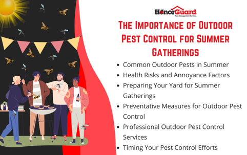 Outdoor pest control is essential for creating a comfortable and enjoyable environment for your summer gatherings. By preparing your yard, implementing preventive measures, and utilizing professional services, you can protect your guests from pests and ensure a successful event. HonorGuard Pest Management is here to help with expert outdoor pest control solutions tailored to your needs. Contact us today to learn how we can help you create a pest-free outdoor space for all your summer events.